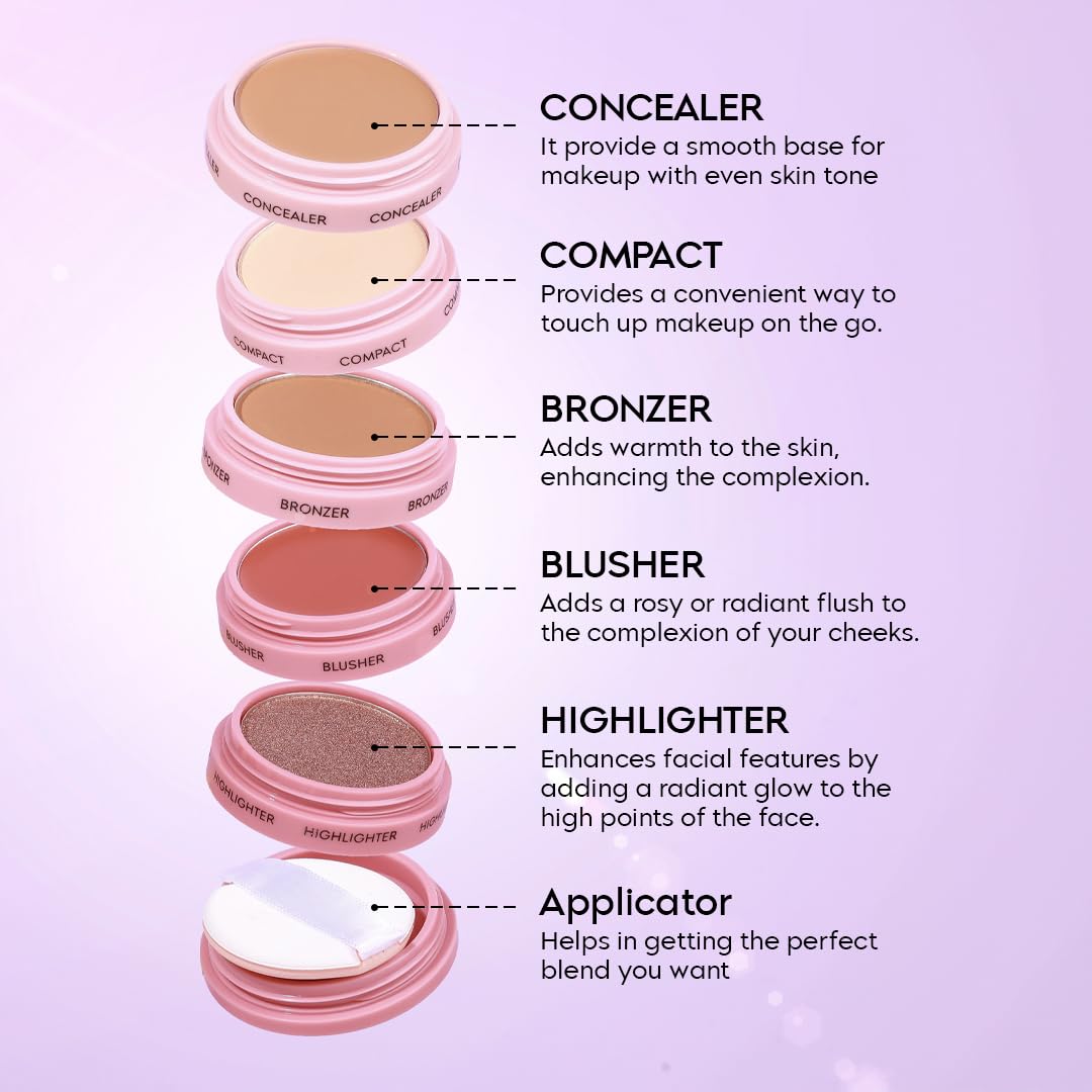 Gleva 5 In 1 Makeup stack With Concealer, Bronzer, Blusher, Compact & Highlighter Smooth & Blendabl